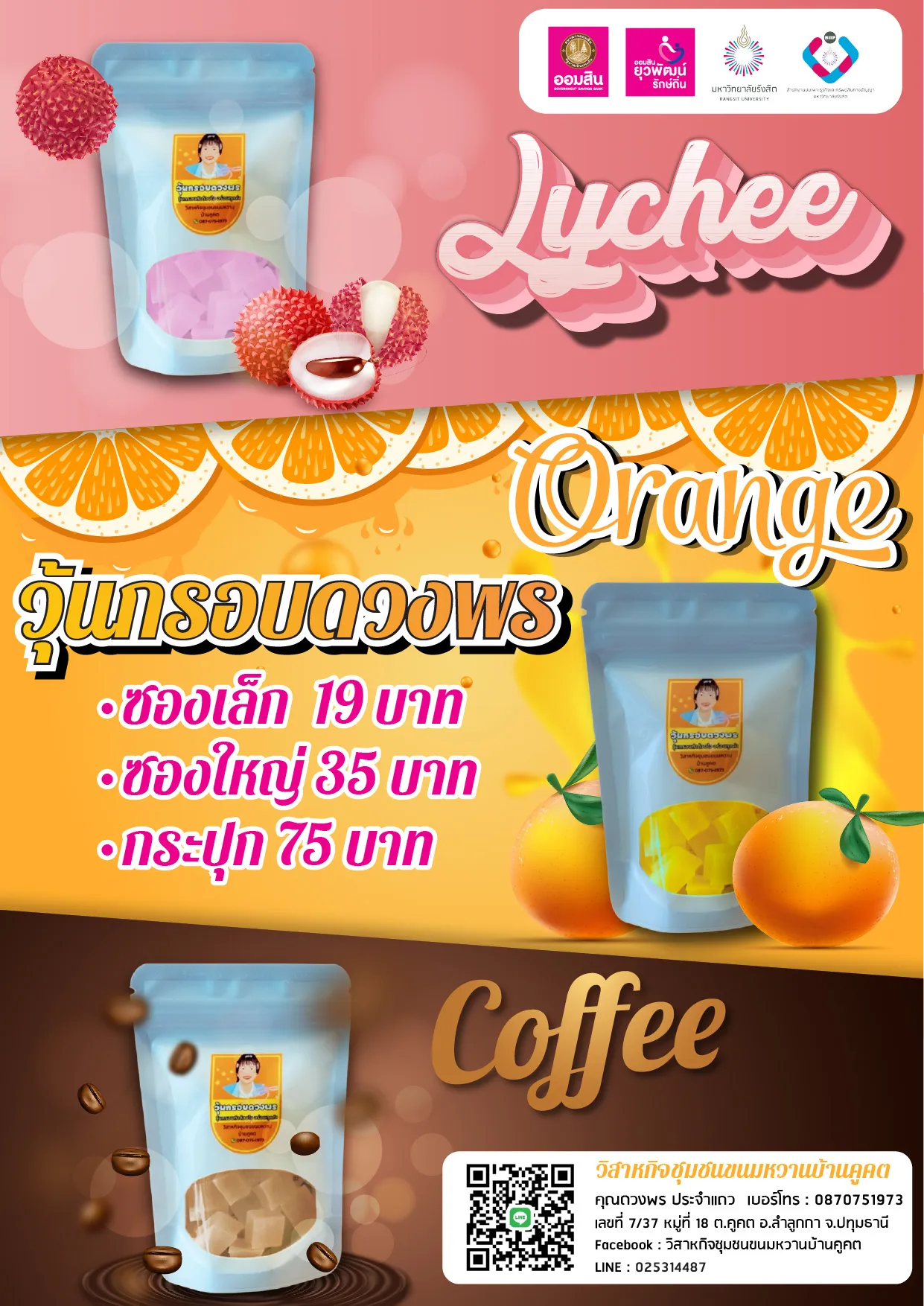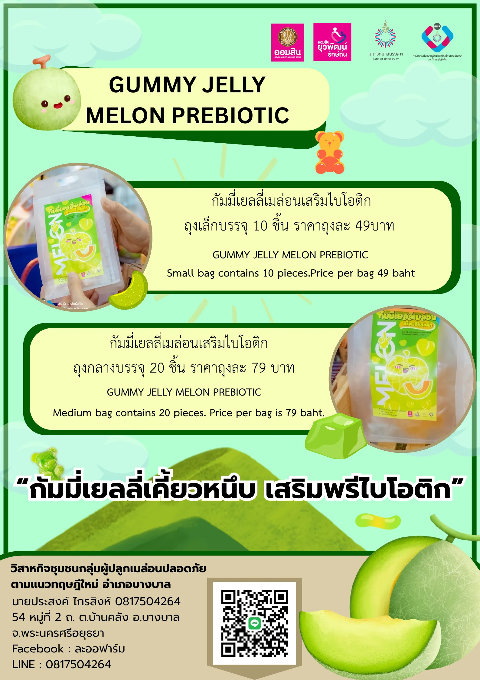 ออมสินยุวพัฒน์รักษ์ถิ่น ปี 2568 วิสาหกิจชุมชนแปรรูปผลผลิตหมู่ 8 วิสาหกิจกลุ่มผู้ปลูกเมล่อนตามแนวทฤษฎีใหม่อำเภอบางบาล วิสาหกิจชุมชนสหัสสเทพสมุนไพรและนวดตอกเส้นบ้านขยาย วิสาหกิจชุมชนขนมหวานบ้านคูคต วิสาหกิจชุมชนเกษตรแปรรูป หมู่14